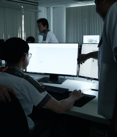 Thai Rung Union Car Plc is unique in employing an all-Thai workforce both to design and to produce vehicles.The first step in the research and development process is the preparation of a product plan. Next comes the creative design stage, leading in turn to the making of a clay model of the vehicle based on the team’s understanding of the concept, and then, via CAD (computer aided design) to a prototype. Each stage is thoroughly planned, whether in the field of engineering, product development or production, to ensure that the product meets all the requirements stipulated in the plan and conforms to world-class standards.”